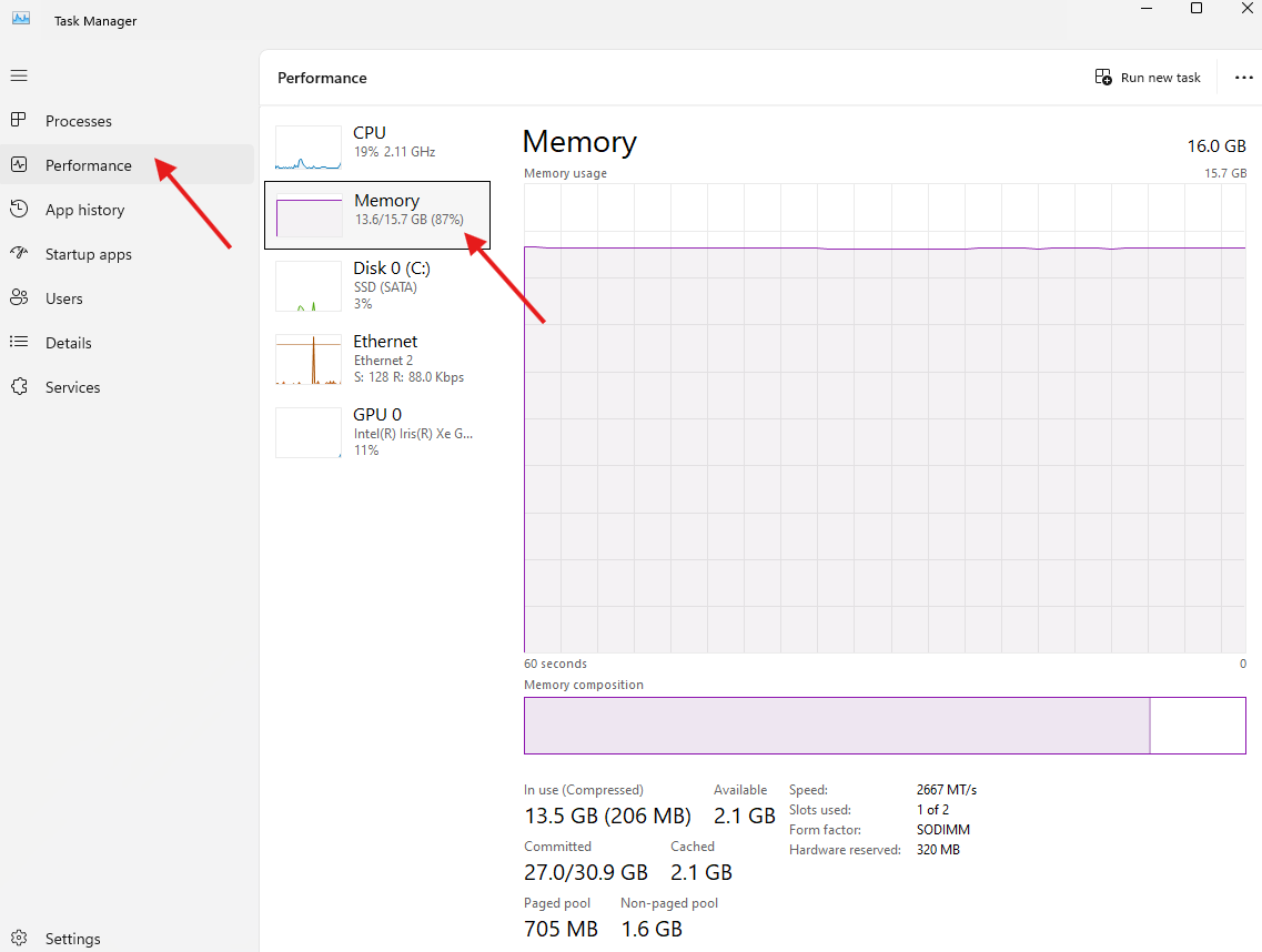 - Navigate to the Performance tab to find the RAM generation (e.g. DDR3, DDR4). RAM generations are not interchangeable.